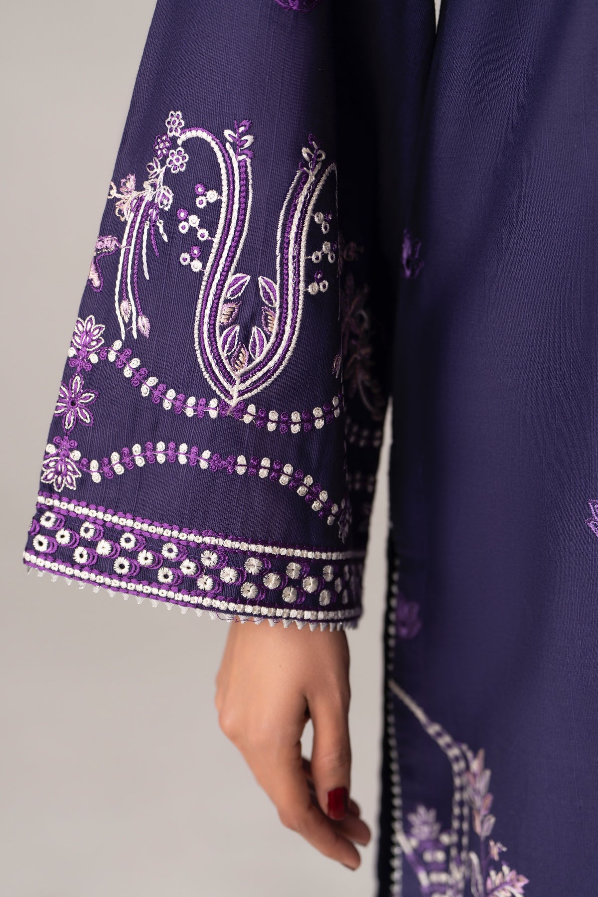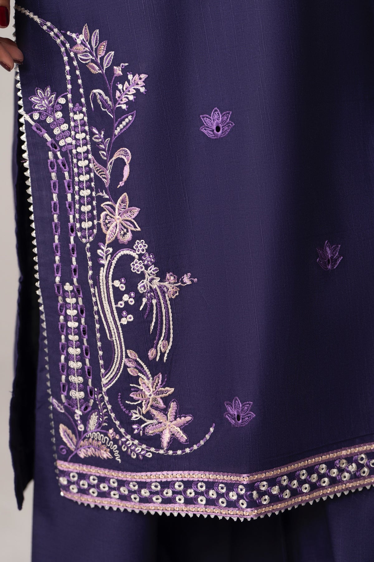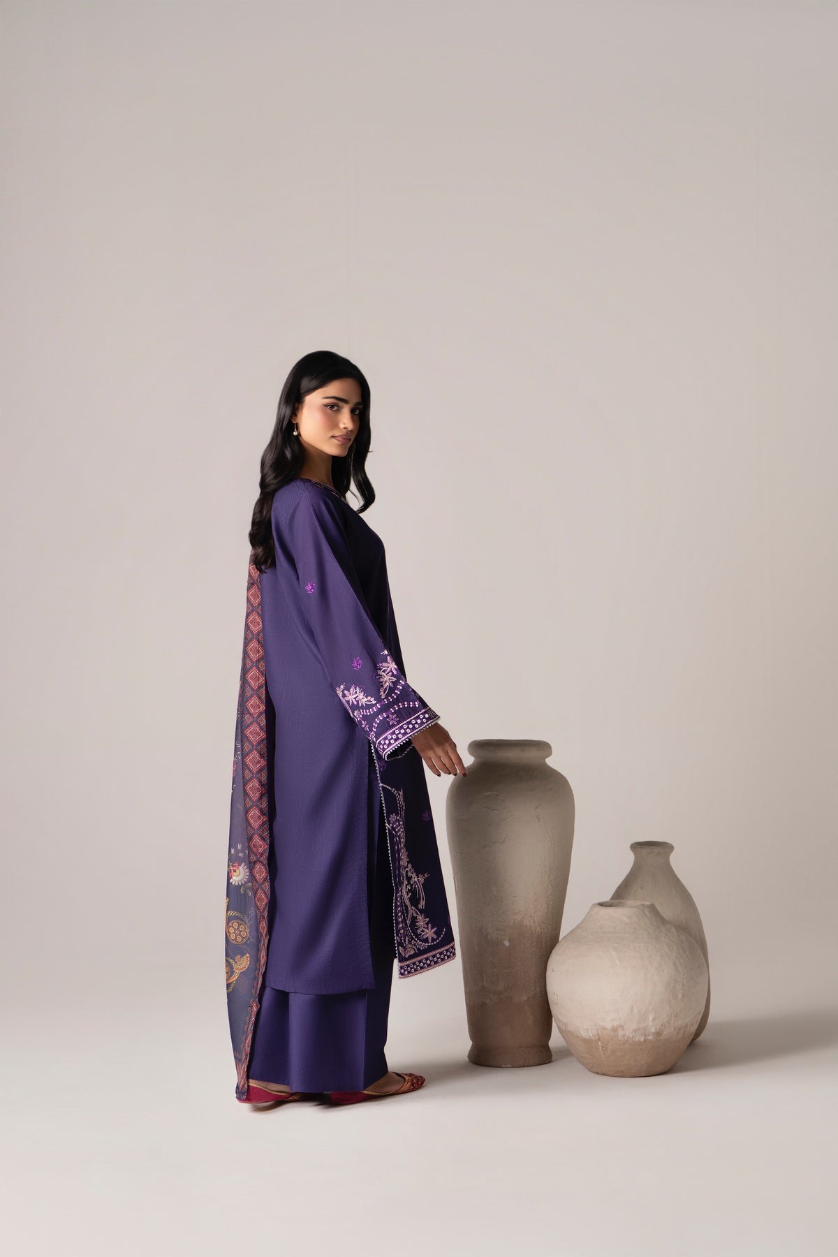 Description: Neelam is a deep purple khaddar outfit that reflects quiet luxury and sophistication. The finely embroidered neckline and sleeve detailing add a refined touch, while the soft khaddar fabric ensures comfort throughout the season. A perfect choice for graceful winter wear.